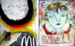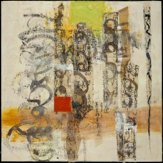 Imagery can be added after the wax has been applied as in the work above. The insect is a transfer I made with a toner copy. A thin layer of clear medium is brushed on the transfer.